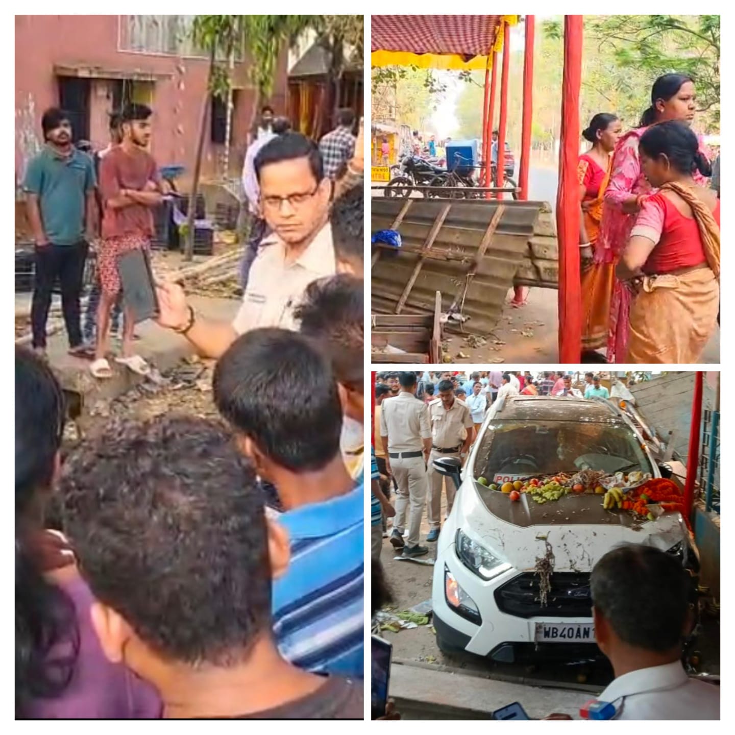 দুর্গাপুর,১০ মার্চঃ বেপরোয়া গতিতে আসা একটি চারচাকা গাড়ি নিয়ন্ত্রণ হারিয়ে ঢুকে গেল রাস্তার পাশে দোকানে। মঙ্গলবার বিকেলে এই ঘটনাকে কেন্দ্র করে চাঞ্চল্য ছড়ায় দুর্গাপুর মহকুমা হাসপাতাল রোডে। এখানে রোডের ধারেই রয়েছে সার দিয়ে ফলের দোকান। চারচাকা একটি সাদা রঙয়ের গাড়ি দ্রুত গতিতে এসে রাস্তার ধারে একটি ফলের দোকানে হুড়মুড়িয়ে ঢুকে পড়ে। গাড়িতে পুলিশের বোর্ড লাগানো ছিল। গাড়ির ধাক্কায় মৃত্যু হয়েছে ফল কিনতে আসা এক ব্যক্তির। মৃতের নাম গোপাল প্রসাদ বার্নোয়াল (৫৭)। এছাড়াও গাড়ির ধাক্কায় এক শিশু সহ আহত হয়েছে আরও কয়েকজ। শিশুটিকে আশঙ্কাজনক অবস্থায় আইসিইউতে ভর্তি করা হয়েছে। আহত অন্য এক যুবককে ভর্তি করা হয়েছে সার্জিক্যাল বিভাগে। এরা সবাই মহকুমা হাসপাতালে চিকিৎসাধীন। আহত এক মহিলা সুপ্রিয়া দাস বলেন, “আমাদের দোকানে কাস্টমার ছিল। আচমকাই একটা গাড়ি দ্রুত গতিতে এসে দোকানে ঢুকে পড়ে। আমাদের দোকানে ধাক্কা মারার পর পাশের দোকানে ঢুকে যায়”। এসিপি সুবীর রায় সহ ঘটনাস্থলে আসেন অন্যান্য পুলিশ আধিকারিকরা। ঘাতক গাড়িটি বাজেয়াপ্ত করেছে নিউ টাউনশিপ থানার পুলিশ। এসিপি সুবীর রায় বলেন, “গাড়িটর সম্বন্ধে খোঁজ নেওয়া হচ্ছে। কি ভাবে দুর্ঘটনা ঘটেছে তা তদন্ত করে দেখা হচ্ছে”।
