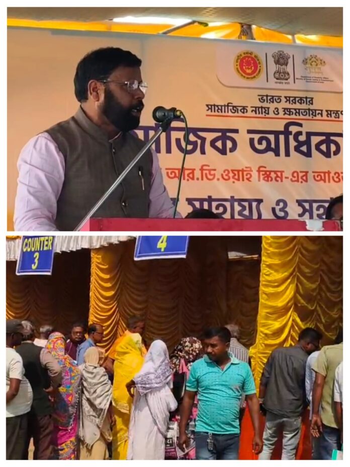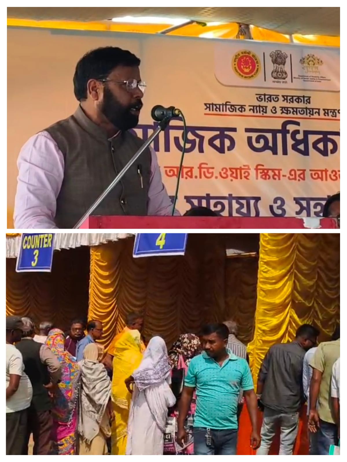 দুর্গাপুর,১৫ ফেব্রুয়ারীঃ রাজ্যের বেকার যুবকযুবতীদের মাসে দেড় হাজার টাকা করে দেওয়ার নতুন প্রকল্প যুবসাথী ঘোষণা করার পর রবিবারই সারা রাজ্যে বিশেষ শিবির শুরু হয়েছে। এই শিবির থেকেই বেকার ছেলেমেয়েরা এই প্রকল্পের জন্য ফর্ম ফিলাপ করে জমা দেবেন। আগামী ২৬ ফেব্রুয়ারী পর্যন্ত এই শিবিরগুলি চলবে। এরই পাশাপাশি দেখা গেল বিজেপির পক্ষ থেকেও একই দিনে কেন্দ্রীয় সরকারের সামাজিক অধিকার শিবির অনুষ্ঠিত হল দুর্গাপুরে। বেনাচিতি এলাকার ৫৪ ফুটের ক্ষুদিরাম মাঠে ভারত সরকারের সামাজিক ন্যায় ও ক্ষমতায়ন মন্ত্রনালয়ের অধীন আর ডি ওয়াই প্রকল্পের আওতায় প্রবীন নাগরিকদের বিনামূল্যে সাহায্য ও সহায়ক যন্ত্র প্রদান অনুষ্ঠিত হয়। এই প্রকল্পে মোট ৭০০০ ব্যক্তিকে নিজের বিধানসভায় সাহায্য করা হচ্ছে বলে জানিয়েছেন দুর্গাপুর পশ্চিমের বিধায়ক লক্ষ্ণণ ঘোড়ুই। এই শিবিরে ষাটোর্ধ প্রবীন নাগরিগদের চশমা থেকে শুরু করে হুইল চেয়ার,বেড প্যান, সহ মোট ৭টি আইটেম বিধায়ক কোটার মাধ্যমে বিতরন করা হয়।