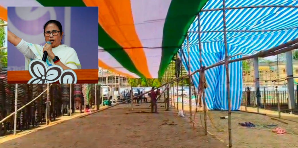 লাউদোহায় তৃণমূল সুপ্রিমো মমতা বন্দ্যোপাধ্যায়ের সভার প্রস্তুতি