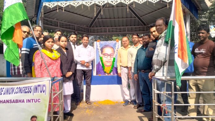 সংবাদদাতা,দুর্গাপুরঃ প্রতি বছরের মতো এবছরও ৬ ডিসেম্বর ভারতীয় সংবিধানের রূপকার তথা জনক বাবা সাহেব ডাঃ ভীম রাও আম্বেদকরের ৬৯ তম মহাপরিনির্বান দিবস পালিত হল দেশজুড়ে। দুর্গাপুরেও বিভিন্ন সংগঠনের তরফে   ভারতীয় সংবিধানের জনককে শ্রদ্ধা জানানো হয়। এদিন সিটি সেন্টারে পশ্চিম বিধানসভা আইএনটিইউসি’র উদ্যোগে দুর্গাপুর আদালত চত্বরে “সম্প্রীতি সৌধে” পুষ্পার্ঘ্য অর্পণ ও স্মৃতিচারণের মাধ্যমে বাবা সাহেব ডাঃ ভীম রাও আম্বেদকরের প্রতি শ্রদ্ধা জানানো হয়। উপস্থিত ছিলেন পশ্চিম বর্ধমান জেলা আইএনটিইউসি সভাপতি সুভাষ সাহা, এ্যাডভোকেট আর্য্য ব্যানার্জী, এ্যাডভোকেট দেবযানী দাস, মহিলা ইনটাক সদস্য সুমা দাস দত্ত,দুর্গাপুর ইন্দিরা মেমোরিয়াল সোসাইটির  সাধারণ সম্পাদক কপিলেন্দু রায়,কার্যকরী সম্পাদক পাঁচুগোপাল রায় ও গোরাচাঁদ আচার্য্য,ডিএমসি সাফাই কর্মচারী ইউনিয়নের সম্পাদক উজ্জ্বল রুইদাস, কোষাধ্যক্ষ পরিমল রুইদাস,এএসপি ঠিকা মজদুর কংগ্রেসের সহ সভাপতি স্বপন কুন্ডু,সম্পাদক অজয় বাগদি,দুর্গাপুর মহকুমা হসপিটাল ওয়ার্কার্স ইউনিয়নের সহ সম্পাদক সাহেব বাউড়ি(রাজা), অল বেঙ্গল কন্ট্রাকটর’স সিকিউরিটি গার্ড এন্ড ওয়ার্কার্স কংগ্রেসের সদস্য উত্তম ঘোষ সহ বিভিন্ন সংগঠনের সদস্যরা। বাবাসাহেব আম্বেদকরের জীবন ও তার কর্ম নিয়ে এখানে বক্তব্য রাখতে গিয়ে ইনটাক জেলা সভাপতি সুভাষ সাহা বলেন,বর্তমান উত্তাল পরিস্থিতিতে যেখানে দেশের সংবিধান বিপন্ন, শোষিত দলিত শ্রেণীর উপর অত্যাচার ক্রমবর্ধমান, সেখানে আমাদের একযোগে বাবা সাহেবের প্রণীত সংবিধানকে রক্ষা করতে একজোট হতে হবে। অনুষ্ঠানটি পরিচালনা করেন দুর্গাপুর পশ্চিম বিধানসভা আই এনটিইউসি সভাপতি এ্যাডভোকেট রবীন চ্যাটার্জী।