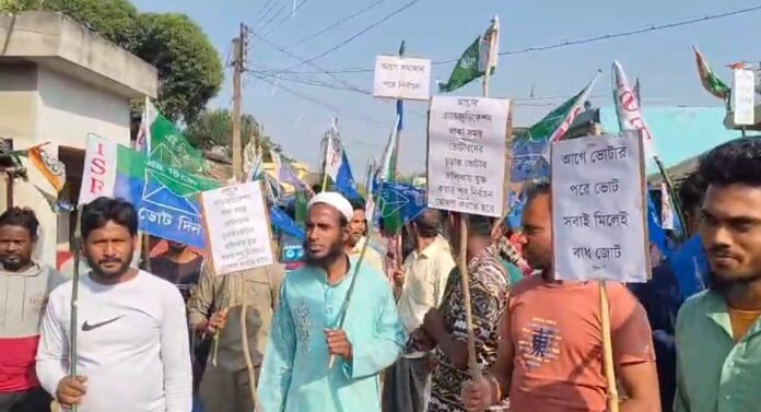 নাম বাদ নিয়ে আইএসএফের প্রতিবাদ মিছিল জেমুয়া গ্রামে