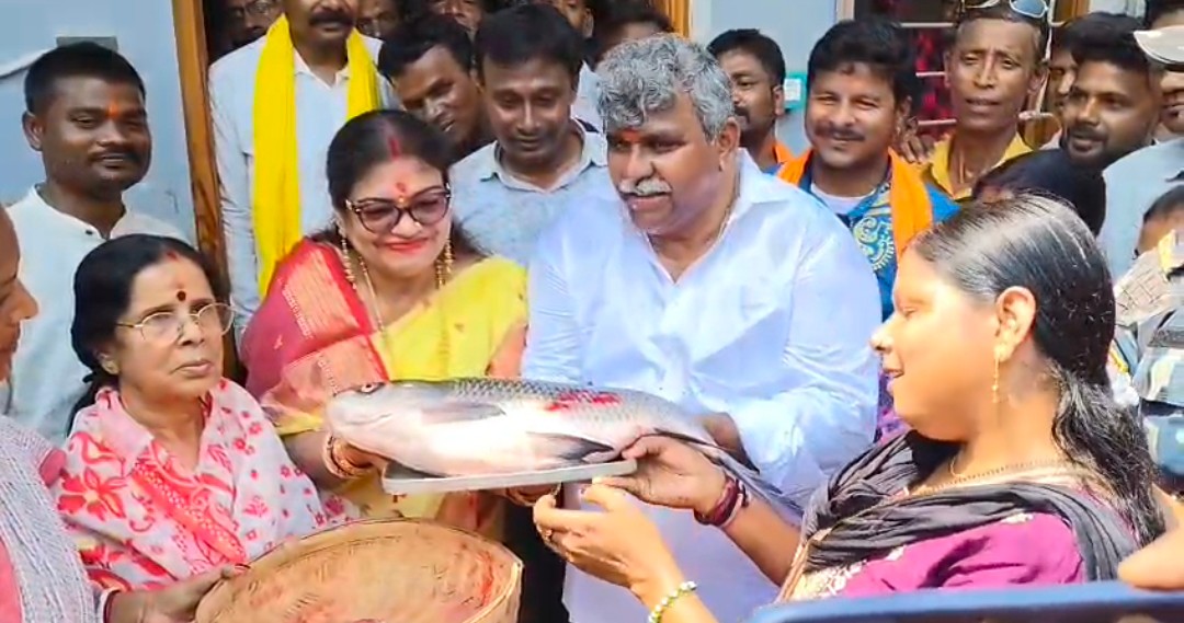 মাছ হাতে অভিনব মনোনয়ন যাত্রা বিজেপি প্রার্থী জিতেন্দ্র তেওয়ারির