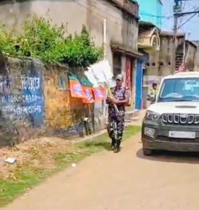 বিজেপি প্রার্থীর কাটআউট বইছেন জওয়ান,বিতর্ক বাঁকুড়ায়