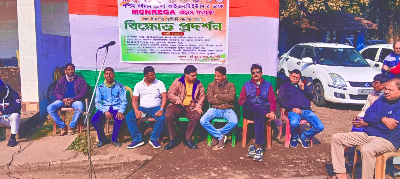 দুর্গাপুর,১১ জানুয়ারীঃ কংগ্রেস সরকারের আমলে চালু হওয়া এমজিএনরেগা (মহাত্মা গান্ধী জাতীয় গ্রামীণ রোজগার নিশ্চয়তা) প্রকল্পের নাম পরিবর্তন করেছে বিজেপি সরকার। এই সিদ্ধান্তের বিরুদ্ধে কংগ্রেসের পাশাপাশি রবিবার কংগ্রেস সমর্থিত শ্রমিক সংগঠন আইএনটিইউসির পশ্চিম বর্ধমান জেলা কমিটির উদ্যোগে প্রতিবাদ জানিয়ে প্রতীকি সত্যাগ্রহ কর্মসূচী পালন করা হল গান্ধী মোড়ের কাছে গান্ধী মূর্তির পাদদেশে। এই নাম পরিবর্তনের মাধ্যমে প্রকল্পটির মূল ভাবনা, অধিকার ও গুরুত্বকে ক্ষুণ্ণ করা হচ্ছে বলে অভিযোগ তুলে তীব্র প্রতিবাদ জানিয়েছেন পশ্চিম বর্ধমান জেলা আইএনটিইউসি সভাপতি সুভাষ সাহা। তিনি জানান,এআইসিসির ঘোষিত কর্মসূচি অনুযায়ী এবং রাজ্য আইএন টিইউসির সভাপতি মোঃ কামরু জামান কামারের নির্দেশে এই কর্মসূচী পালন করা হয়। এখানে অন্যদের মধ্যে ছিলেন পশ্চিমবঙ্গ প্রদেশ কংগ্রেসের সম্পাদক প্রসেনজিৎ পুঁইতুন্দি, হিন্দুস্তান স্টিল ওয়ার্কার্স ইউনিয়নের জয়েন্ট কনভেনর তথা রাজ্য আইএনটিইউসির সম্পাদক রজত দীক্ষিত,কার্যকরী সভাপতি পরেশনাথ কর্মকার, অ্যালয় স্টিল ওয়ার্কার্স ইউনিয়নের কার্যকরী সভাপতি মণিলাল সিনহা, দুর্গাপুর পশ্চিম বিধানসভা আইএনটিইউসি সভাপতি তথা আইনজীবী রবীন চ্যাটার্জী, পশ্চিম বর্ধমান জেলা কংগ্রেস আইনজীবী সেলের সম্পাদক দেবযানী দাস, দুর্গাপুর ইন্দিরা মেমোরিয়াল সোসাইটির সম্পাদক পাঁচুগোপাল রায়,অমিয় মন্ডল,এএসপি ঠিকা মজদুর কংগ্রেসের সহ সভাপতি স্বপন কুন্ডু,সম্পাদক অজয় বাগদী, কোষাধ্যক্ষ শিবনাথ ধীবর,সত্যব্রত রায়, ডিএমসি ক্যাজুয়াল সাফাই কর্মী ইউনিয়নের সম্পাদক উজ্জ্বল রুইদাস,পরিমল রুইদাস, দুর্গাপুর সব ডিভিশনাল হসপিটাল ওয়ার্কার্স ইউনিয়নের সম্পাদক শশিকান্ত বাউড়ি,রাজা বাউরি সহ অন্যান্য নেতৃত্ব ও কর্মীবৃন্দ।