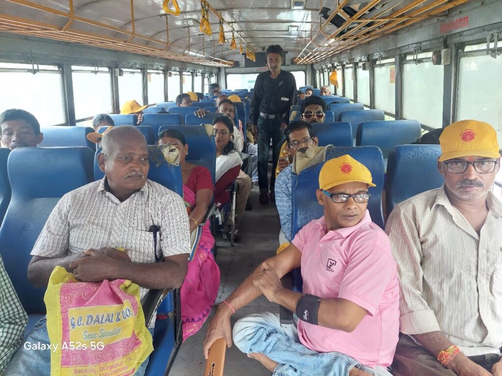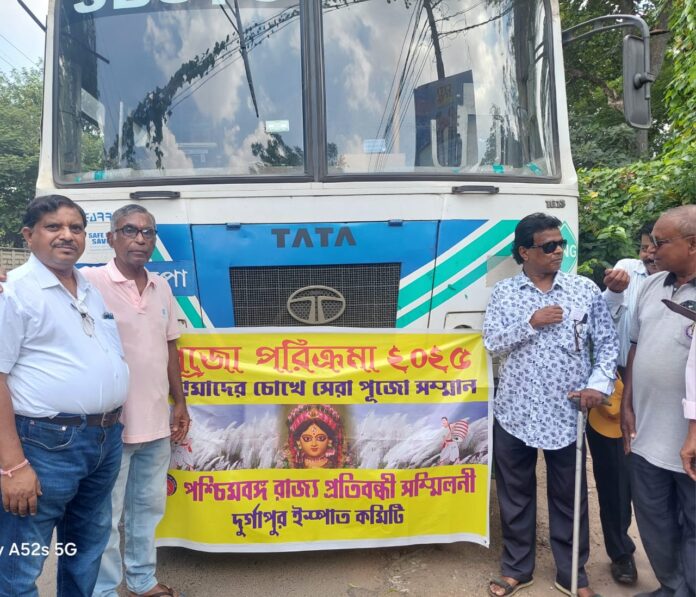 সংবাদদাত,দুর্গাপুরঃ পশ্চিমবঙ্গ রাজ্য প্রতিবন্ধী সম্মেলনী এর দুর্গাপুর ইস্পাত কমিটি প্রতিবারের মতো এ বছরও বিশেষভাবে সক্ষম ৫৫ জন পুরুষ ও মহিলাদের নিয়ে দুর্গাপুরের মহকুমা শাসক ডঃ সৌরভ চট্টোপাধ্যায়ের সহযোগিতায় এসবিএসটিসির একটি বাসে দুর্গাপুরের পুজো পরিক্রমায় বের হলো। ৫৫ জন বিশেষভাবে সক্ষম পুরুষ ও মহিলাদের মধ্যে পাঁচ জন দৃষ্টিহীন মানুষও ছিলেন। দৃষ্টিহীন পিংকি দত্ত জানান, প্রতি বছরই এই দিনটার জন্য তিনি অপেক্ষা করে থাকেন। নিজে দেখতে না পেলেও তার সহযাত্রী বন্ধুদের দৃষ্টিতে তিনি প্রত্যেকটি পুজোই অনুভব করেন ও উপভোগ করেন। লতিকা বর্মনের শরীরের নিম্নাংশ একদম অকেজো। উনি এলেন হুইল চেয়ারে বসে উনার বাড়ির কারো সহযোগিতায়। কেমন লাগছে জিজ্ঞেস করতে বললেন, একটি দিন আমরা সব বিশেষভাবে সক্ষম মানুষেরা এক জায়গায় হই। একসঙ্গে আনন্দে দুর্গাপুরের বড় বড় পুজো গুলো দেখতে যাই, যা কোনদিনও সম্ভব হতো না যদি পশ্চিমবঙ্গ রাজ্য প্রতিবন্ধী সমিতির দুর্গাপুর শাখা আমাদের এই ভ্রমণের ব্যবস্থা করত। ওনাকে যখন ধরে ধরে বাসে তোলা হলো বাসের মধ্যে বসে থাকা অন্যান্য বিশেষভাবে সক্ষম পুরুষ ও মহিলারা উল্লাসে করতালি দিলেন। ওরা দুর্গাপুরের বিভিন্ন বড় বড় দুর্গা পুজোগুলি দর্শন করলেন। এদের অনেকে প্রতিমা দেখতে বাস থেকে নামবেন আবার অনেকে বাসের জানালা থেকেই যতদূর সম্ভব পুজো প্যান্ডেল গুলো দর্শন করবেন। দুর্গাপুর শাখার সম্পাদক গৌতম ঘোষ নিজেও একজন প্রতিবন্ধী। উনি জানালেন, তারা সারা বছর ধরেই প্রতিবন্ধীদের জীবনের বিভিন্ন রকম প্রতিবন্ধকতা দূর করতে প্রচুর কর্মসূচি নিয়ে কাজ করেন। প্রচুর মানুষ ও সংস্থা ওদের বিভিন্ন রকম সহায়তা করেন। মহাসপ্তমীর দিন সকালে পুজো পরিক্রমার এই বাসটি যাত্রা শুরু করে বেনাচিতির পাঁচ মাথার মোড় থেকে। যাত্রা শুরুর সংকেত দিলেন এই সংস্থার অন্যতম শুভানুধ্যায়ী ডিএসপি হাসপাতালের এজিএম ফিজিওথেরাপি ডঃ তপন বাদ্যকর। উপস্থিত ছিলেন সমাজকর্মী প্রণয় রায় সহ অন্যান্যরা। সপ্তমীর দিন দুর্গাপুরের বিশেষ বিশেষ পুজো মণ্ডপ দর্শনের পর ওরা সবাই রিকল পার্কের আবাসিক আরতি মাহাতার পারিবারিক পূজোয় মধ্যাহ্নভোজে অংশ নেবেন বলে জানান পশ্চিমবঙ্গ রাজ্য প্রতিবন্ধী সম্মেলনীর দুর্গাপুর ইস্পাত শাখা সম্পাদক গৌতম ঘোষ।